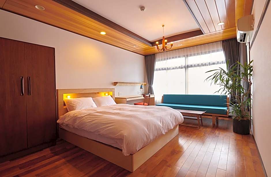 The double room provides air conditioning, a wardrobe, as well as a shared bathroom featuring a hairdryer and slippers. The double room offers a safe deposit box, a sofa, yukata along with heating. The unit offers 2 beds.